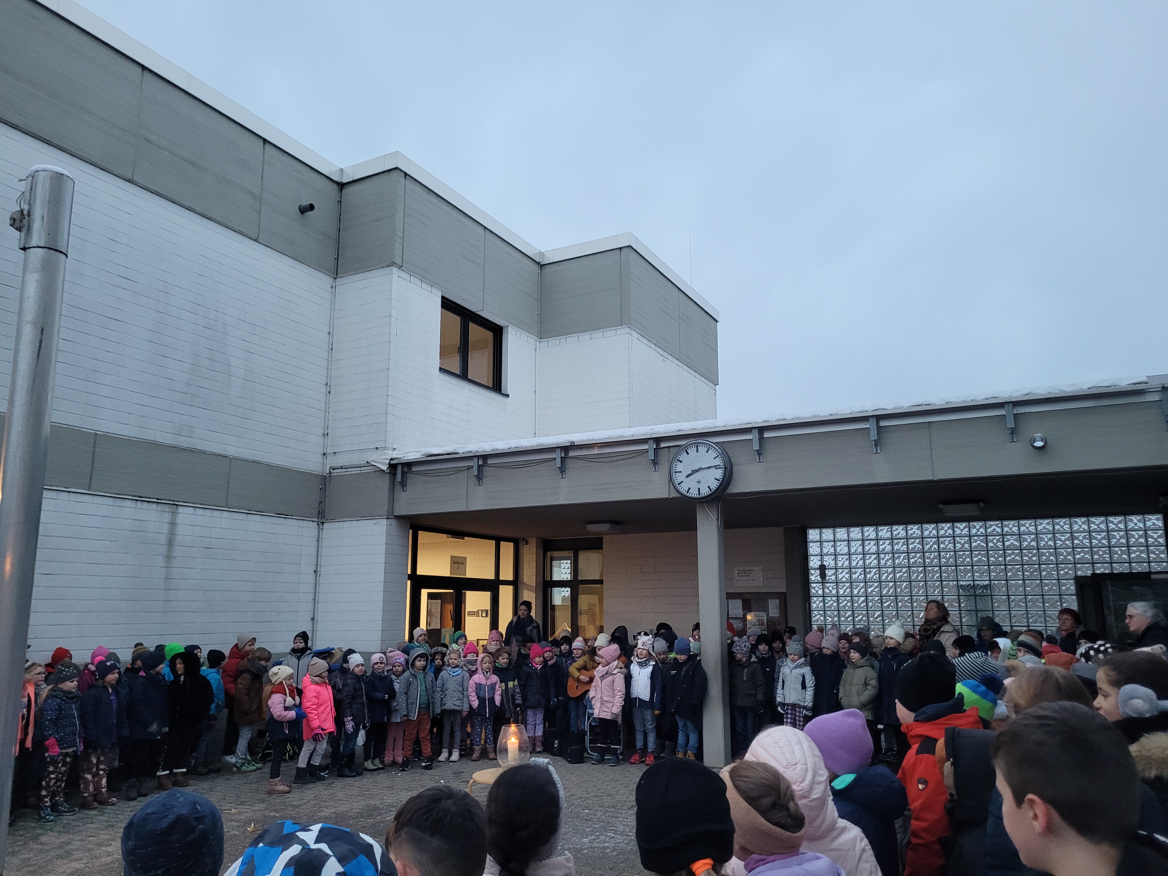 Während der Adventszeit singen wir immer montags zu Beginn der ersten Unterrichtsstunde mit allen Schülerinnen und Schülern auf dem Schulhof in besinnlicher Stimmung Weihnachtslieder. Unsere diesjährigen Lieblingslieder sind „In der Weihnachtsbäckerei“ und „Feliz Navidad“! Textsicher singt die ganze Schulgemeinschaft mit.