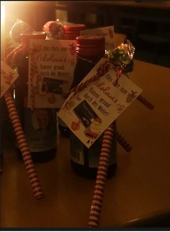 Am Mittwoch hat der Nikolaus mit tatkräftiger Unterstützung des Fördervereins unseren Kindern ein tolles Geschenk gebracht. Es ist wunderbar, dass der Förderverein sich so engagiert. Solche Initiativen stärken die Verbindung zwischen Schule, Eltern, Lehrern und Schülern, fördern das Gemeinschaftsgefühl und tragen zu einer positiven Lernumgebung bei. Es war den Kindern ein Fest, gesunden „Rotwein“ zum Frühstück zu trinken. Auch der Nikolaus-Bleistift kam gut an! Vielen Dank an den Nikolaus und unseren Förderverein!