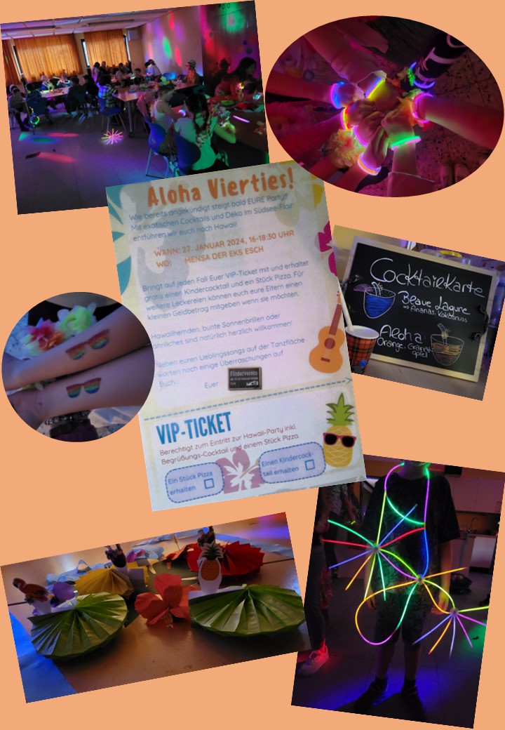 Am vergangenen Freitag veranstaltete der Förderverein unserer Schule zum Halbjahresabschluss und zur Feier der Zeugnisse eine „Hawaii-Party“ für unsere Viertklässler. Die Schülerinnen und Schüler hatten sichtlich großen Spaß! Damit jeder direkt ein richtiges Hawaii-Feeling bekam, erhielten die Kinder beim Ankommen eine Blumenkette und tauchten ein in eine großartig geschmückte Umgebung. Neben einer großen Tanzfläche mit cooler Musik durften sie ein „Aloha-Rätsel“ für die Teilnahme an einem Gewinnspiel lösen. Mit Knicklichtern konnten die Kinder sich oder andere/s dekorieren, an einer Station durfte man sich ein zum Motto passendes Glitzer-Tattoo aussuchen, es gab reichlich Pizza und Cocktails,… Es ist toll, dass die Hawaiiparty des Fördervereins so positiv aufgenommen wurde. Solche Veranstaltungen spielen eine bedeutende Rolle bei der Förderung des Gemeinschaftsgefühls innerhalb der Schule. Die Mühe und das Engagement des Fördervereins tragen dazu bei, eine lebendige und unterstützende Umgebung für die Schüler zu schaffen. Ich hoffe, dass solche Ereignisse weiterhin erfolgreich sind und die Schulgemeinschaft stärken. Ein herzliches Dankeschön an den Förderverein für sein engagiertes Wirken und die Organisation dieser tollen Hawaiiparty!👏